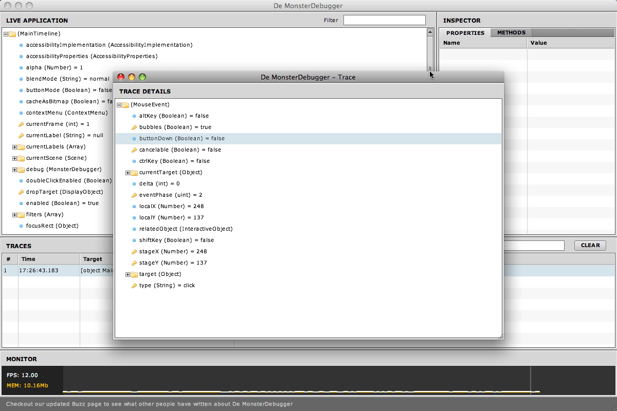 ActionScript デバッグに De MonsterDebugger を使うとすこぶる便利だったのでお勧めするエントリー。